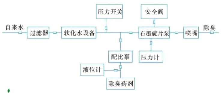 ◆進(jìn)水先經(jīng)過軟化水裝置對(duì)水質(zhì)進(jìn)行軟化,以保證降塵除臭系統(tǒng)的使用壽命;◆藥劑用比例配比泵按設(shè)計(jì)的流量自行配比;