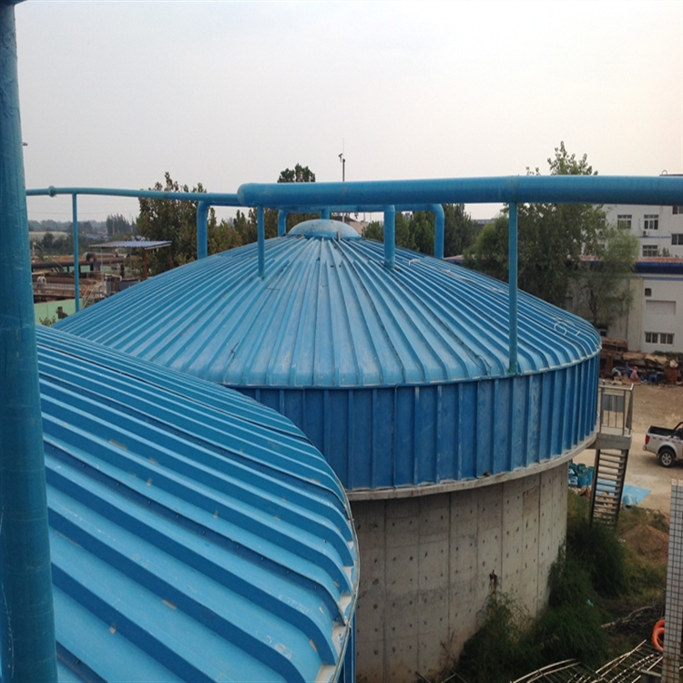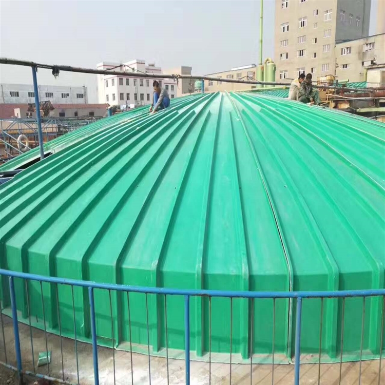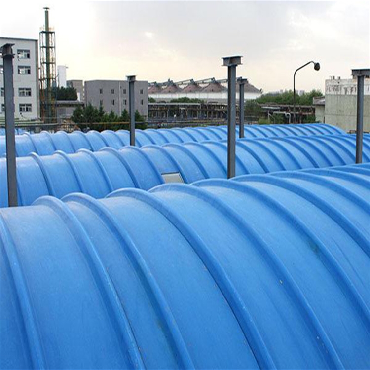 11、為提高產(chǎn)品強(qiáng)度和剛度,根據(jù)用戶需要可設(shè)計(jì)為拱形,供高根據(jù)池體跨度確定,集氣罩表面設(shè)計(jì)為波浪形,產(chǎn)品剛性與載荷大幅度提升,達(dá)到高強(qiáng)、安全的目的。對于圓形池體可設(shè)計(jì)為平板護(hù)罩,采用傘形布置、立筋加強(qiáng),并輔以復(fù)合框架支撐。